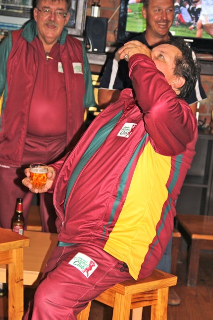 In similar vein to the fines handed out at the warm up game the Gents chose 3 players as candidates to wear the Dick of the Day wig, presented for on field indiscretions. All the players voted and M won (or lost, depending on how you view it). This is as close as Gibbo wants to get to being Dick of the Day.