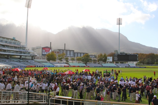 As is tradition, the teams gather after the game to honour the pitch with beers and boerewors. This particular pitch is the oldest one in South Africa – the first turf wicket ever laid – and it’s still the original. Hallowed ground indeed.