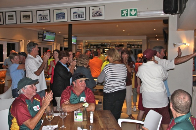We all piled on to the homeward bound bus, tired and happy. Then we had to sit and wait for 20 minutes to confirm whether Frank, a member of a Brisbane team that was sharing the bus with us, was safe and sound. Frank is 78 years young. Turns out he was on the other bus and was probably back at the hotel and tucked up in bed by the time we left the grounds. Now whenever anyone is looking for someone else the cry goes out, “Where’s Frank”? We don’t know who Frank is but we hope to meet him before we go home.