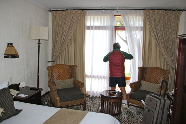 After 24 long hours we’ve made it to South Africa and our lodge at the game park. Last night’s flight left Singapore at 1.30am; again, I had an empty seat on one side. I watched two more movies – Birdman (quirky, a bit dark, well acted) and The Imitation Game (really like this one). That’s four movies in total – more than I usually watch in a whole year.