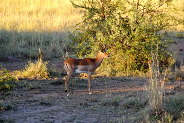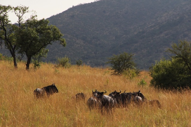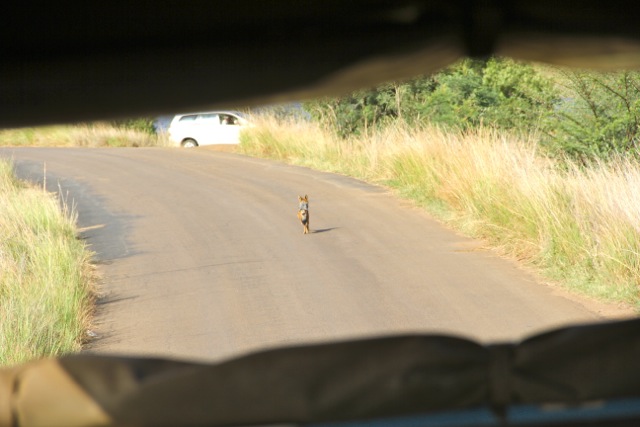 Customs was easy; our bags were the last two to come onto the carousel (of course). Our friends were waiting for us and we drove from Johannesburg, through Pretoria and then on to Bakubung Lodge in Pilanesberg National Park where, just before the entrance, we glimpsed our very first African Animal.