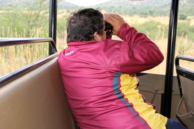 Here’s our guide, scanning the horizon for anything that moves (the French man in the seat in front told him, “you have really good eyes”). Sir, it’s the binoculars….