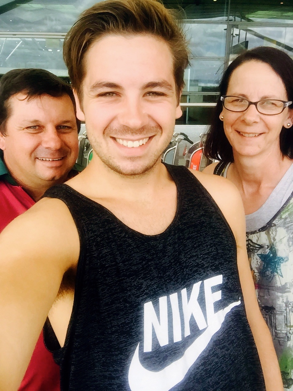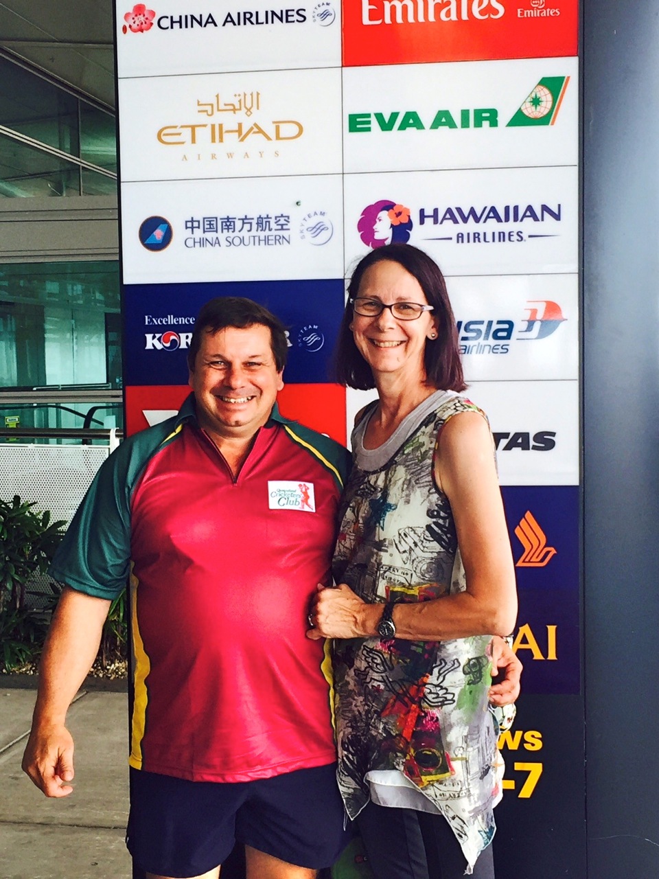 Currently in Singapore on a 5 hour stopover. Killing time. Drew took phone pics at Brisbane. Gibbo’s bag was heaviest; all that cricket gear….